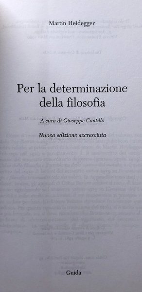 PER LA DETERMINAZIONE DELLA FILOSOFIA.