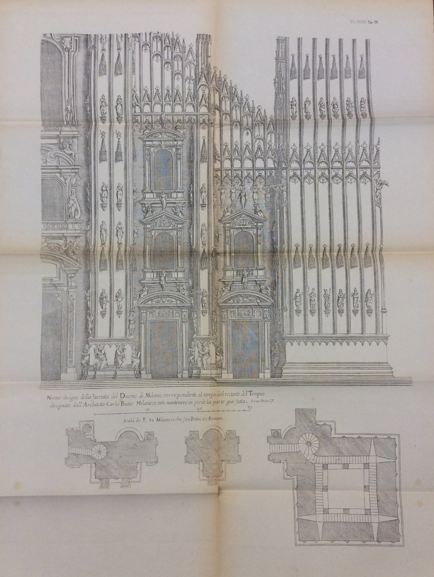 In-8 gr. (mm. 257x178), tela coeva, conserv. cop. orig., pp. 9, con 2 grandi tavole fuori testo più volte ripieg. (1 con il nuovo disegno della facciata e 1 relativa ad alcune guglie). Estratto dal Periodico Il Politecnico, fascicolo di Luglio-Agosto, 1886. Ben conservato.