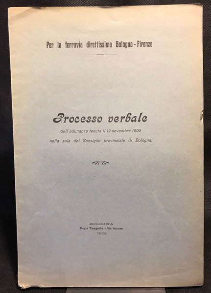 Per la ferrovia direttissima Bologna-Firenze. Processo verbale dell'adunanza tenuta il 19 novembre 1905 nella sala del consiglio provinciale di Bologna.