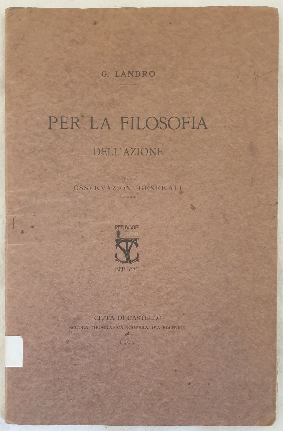 Pubblicazione del 1907 di filosofia di G. Landro. In buone condizioni. Copertina editoriale in buone condizioni generali con lievi usure ai margini e dorso. Legatura in buone condizioni. Pagine in buone condizioni con fioriture. In 8. cm 23,5x15,5. Pp. 46