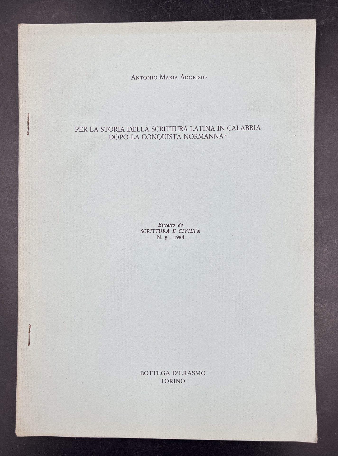 Per la STORIA della SCRITTURA LATINA in CALABRIA dopo la CONQUISTA NORMANNA. Estratto orig., da "Scrittura e civiltà", n. 8, 1984.