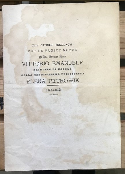 Per le fauste nozze di sua altezza reale Vittorio Emanuele, Principe di Napoli colla gentilissima principessa Elena Petrowik. OMAGGIO