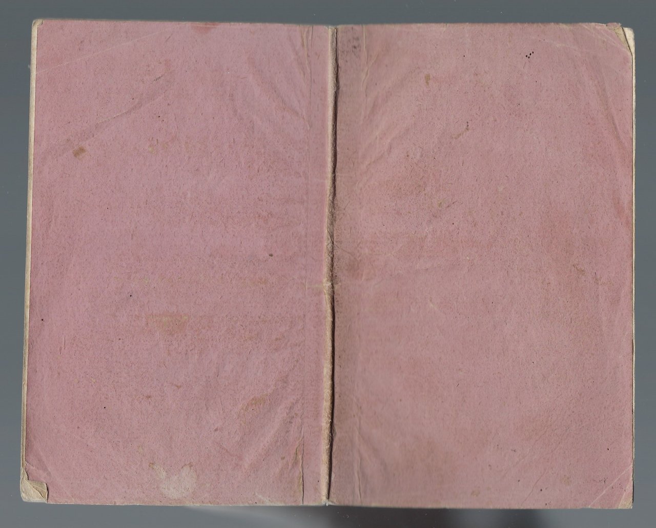 Legatura d'attesa in carta rosa pallido, con alcuni segni vari.