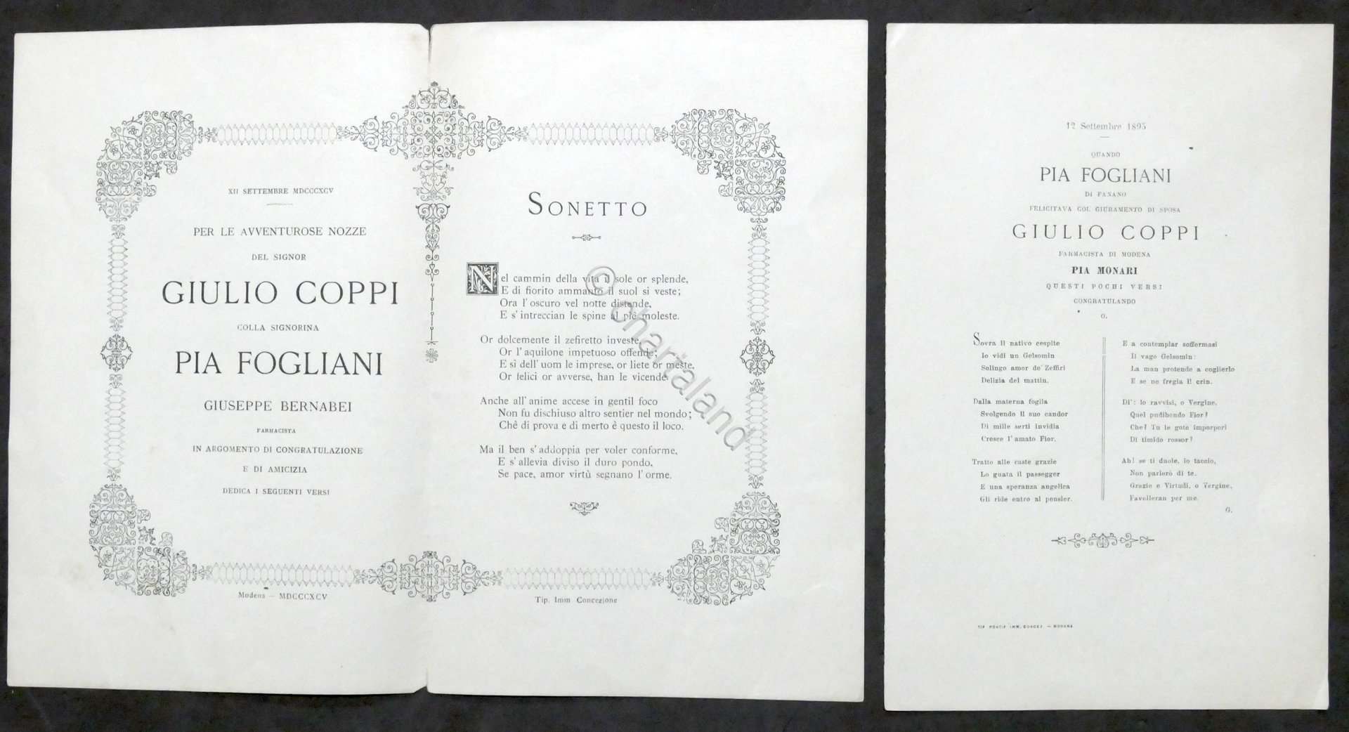 Per le Nozze Giulio Coppi con Pia Fogliani - Sonetti - Modena 1895