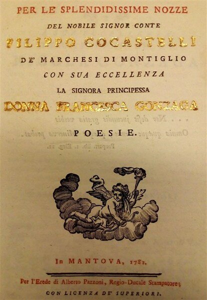 PER LE SPLENDIDISSIME NOZZE del Nobile Signor Conte Filippo Cocastelli de' Marchesi di Montiglio con Sua Eccellenza la Signora Principessa Donna Francesca Gonzaga. Poesie.