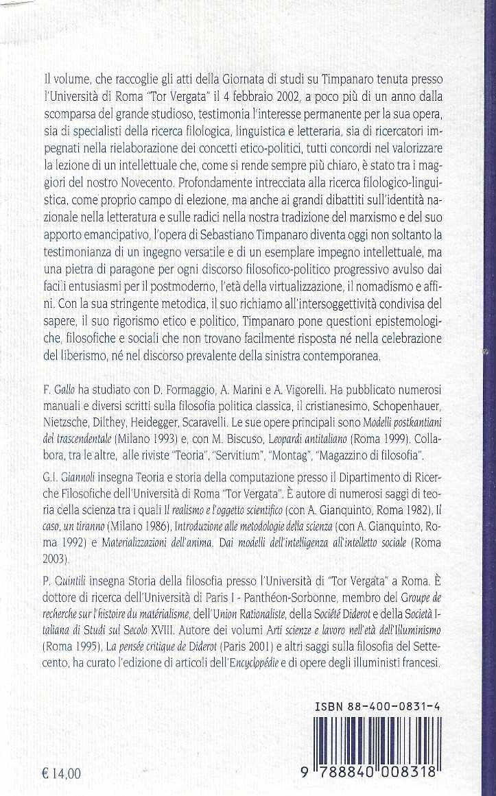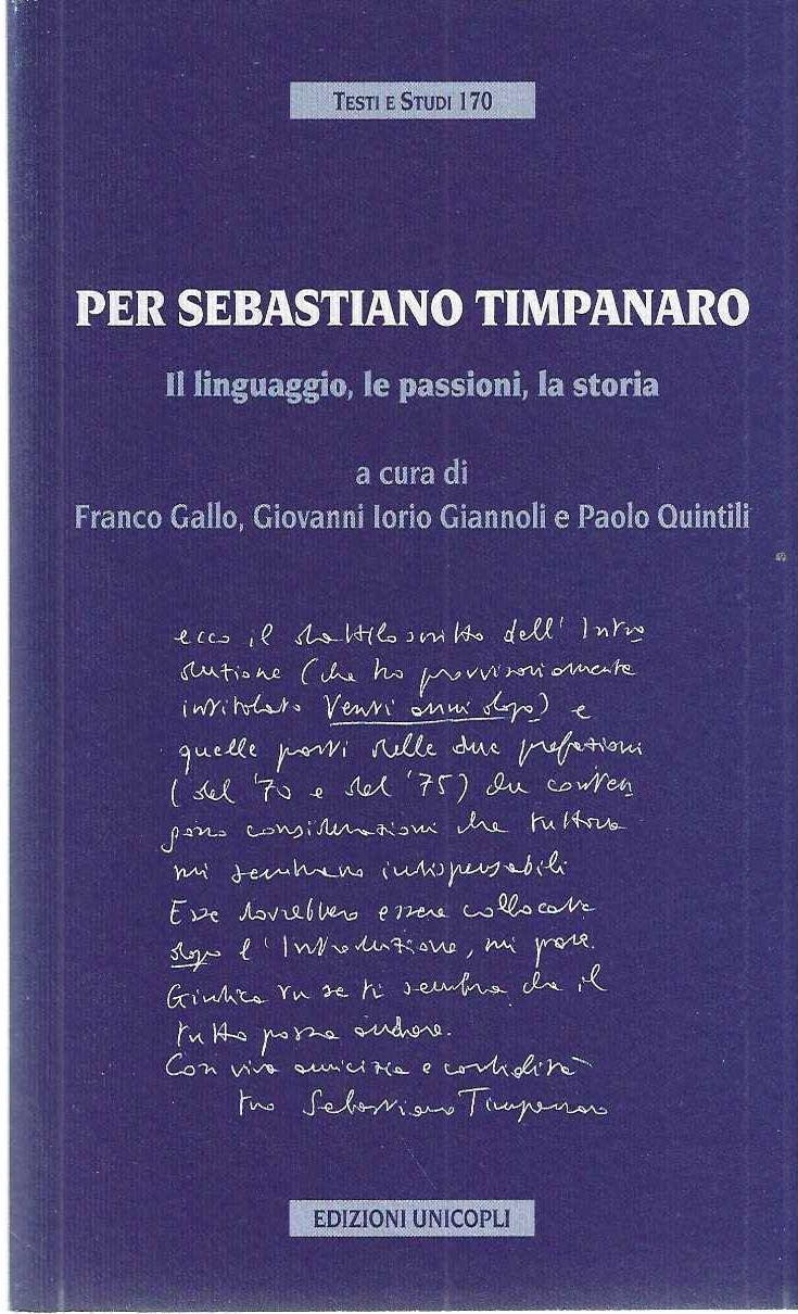 "Per Sebastiano Timpanaro" "Il linguaggio, le passioni, la storia"