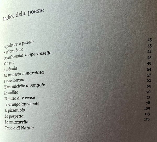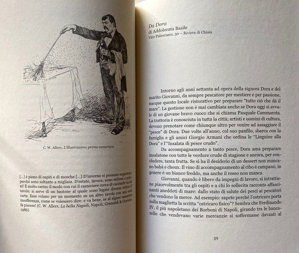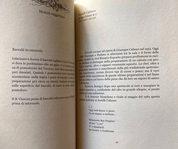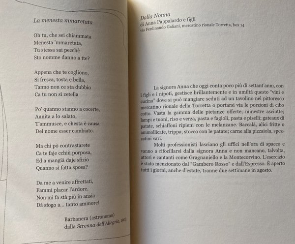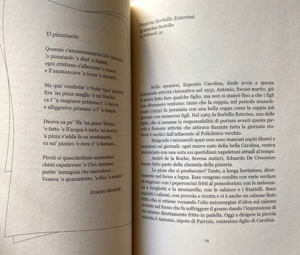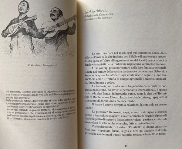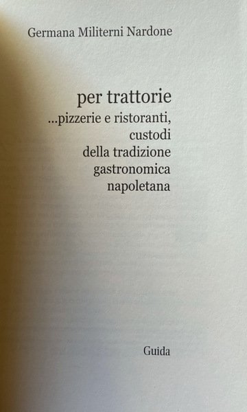 Soggetti: Gastronomia, Tradizioni, Napoli, Cultura napoletana, Cibo, Piatti tipici, Storia culinaria, Poesie, Ricettario, Ricette storiche, Convivialità, Trattorie, Ragù, Gnocchi, Polpette, Linguine, Cozze, Vongole, Carne, Mozzarella, Porzio, Coccio, Carciofi, Ricotta di Montella, Panzarotti, Polipetti affogati, Polpo, Luciana, Vermicielle a vongole, Tavola di Natale, Bollito, Rraù, Manfredi, Via Speranzella, Da Dora, Classici napoletani, Nennella, Quartieri spagnoli, La cantina di Triunfo, Dialetto napoletano, Cenare fuori, Pranzo, Domenica, Famiglia, Polpette, Nonna, Torretta, Street food, Esterina Sorbillo, Pizza fritta, Pizza a portafoglio, Locali tipici, Guide turistiche, insolite, Scarole e fagioli, Cucina, Enologia, Vini campani, La Fila, Leon d'oro, Piazza Dante, Centro storico, Mimì alla Ferrovia, Fratelli Cafasso, Buongustaio, Taverne, Trattorie tipiche, Ristoranti, Agerola, Fiordilatte, Locali, Ettore, Lombardi, Sorelle, Gorizia, Vomero, Fuorigrotta, Posillipo, Mergellina, Chiaia, Osterie, Tonino, Calamaro, Pozzuoli, Bagnoli, Trianon, Forcella, Starita, Materdei, Mattozzi, Santa Lucia, Margherita, Puttanesca, Baccalà, Frittura, Paccheri, Ziti spezzati, Genovese, Candele, Zeppole, Pizzaiola, Cassuola, Enogastronomia, Guida, Mezzanielli allardiati, Crocchè di patate, Michele, Menù napoletani, Tradizione gastronomica partenopea napoletana, Poesie, Raccolte, Ricette, Minestra maritata, Parmigiana di melanzane, Naples, Restaurants, Recipes, Gourmet, Libri Vintage Fuori catalogo, Collezionismo, Delizie, Vesuvio, Menu, Pesce, Dolci, Sfogliatella, Caffè, Canzoni, Posteggia, Monzù, Salsicce e friarielli, Gastronomy, Traditions, Naples, Neapolitan culture, Food, Typical dishes, Culinary history, Poems, Recipes, Historical recipes, Conviviality, Trattorias, Spaghetti, Meatballs, Mussels, Clams, Meat, Artichokes, Poached octopus, Christmas Table, Boiled meat, Neapolitan classics, Spanish quarters, Neapolitan dialect, Dine out, Lunch, Sunday, Family, Meatballs, Grandmother, Fried pizza, Wallet pizza, Typical places, Tourist guides, unusual, Escarole and beans, Cuisine, Enology, Wines from Campania, Historic center, Gourmet, Taverns, Typical trattorias, Restaurants, Fiordilatte, Local, Taverns, Squid, Codfish, Frying, Candles, Zeppola, Food and Wine, Guide, Potato croquettes, Neapolitan menus, Neapolitan Neapolitan gastronomic tradition, Poems, Cookbook, Collections, Recipes, Soup, Eggplant parmigiana, Out of print books, Collectibles, Delights, Vesuvius, Menu, Fish, Desserts, Coffee, Songs, Sausages and broccoli, Viaggio, Voyage, Travel