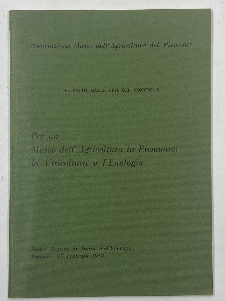 Per un Museo dell’Agricoltura in Piemonte: la Viticoltura e l’Enologia. Estratto dagli Atti del Convegno, Museo Martini di Storia dell’Enologia, Pessione, 25 febbraio 1978.