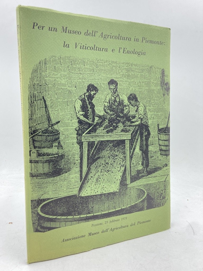 Brossura editoriale illustrata, cm 24 x 17, pp (4) 131 (21) di cui 18 illustrate a colori. Atti del primo Convegno dell’Associazione Museo dell’Agricoltura del Piemonte, tenutasi il 25 febbraio 1978 presso il Museo Martini di Storia dell'Enologia di Pessione. Contiene:Mario Pagella - Situazione e tendenze evolutive della vitivinicoltura piemontese; Italo Eynard, Luigi Lisa e Annibale Gandini - Linee evolutive della tecnica viticola ed enologica in Piemonte; Mario Abrate - La fillossera della vite in Piemonte.; Giuseppe Bracco - Problemi di storia della vite e del vino in Piemonte; Rose-Claire Schule - Les musées locaux du Valais (Suisse); Associazione Museo dell'Agricoltura del Piemonte - Proposte per il Museo dell'Agricoltura del Piemonte: nuclei viti-vinicoli; - Testimonianza di Sesto Bertello, detto Cetu (classe 1901) e Guido Bertello, nipote (classe 1929), raccolta da Luciana Quagliotti a Schierano (comune di Passerano Marmorito, Asti) nell'agosto 1977, registrazione originale in piemontese, trascrizione di Laura Montefamegli.