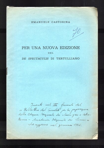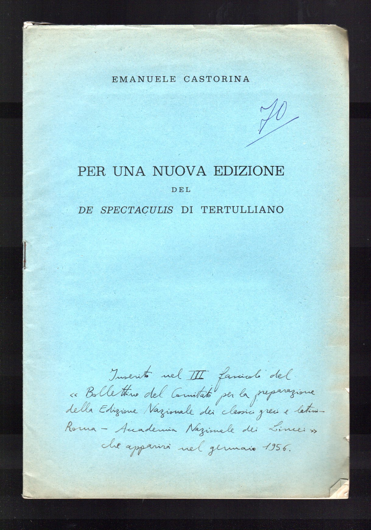 Per una nuova edizione del De Spectaculis di Tertulliano