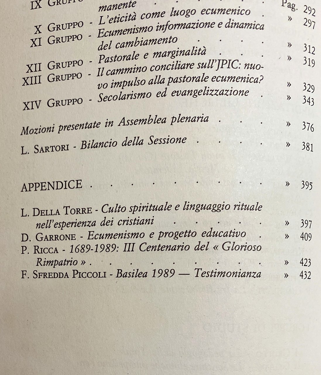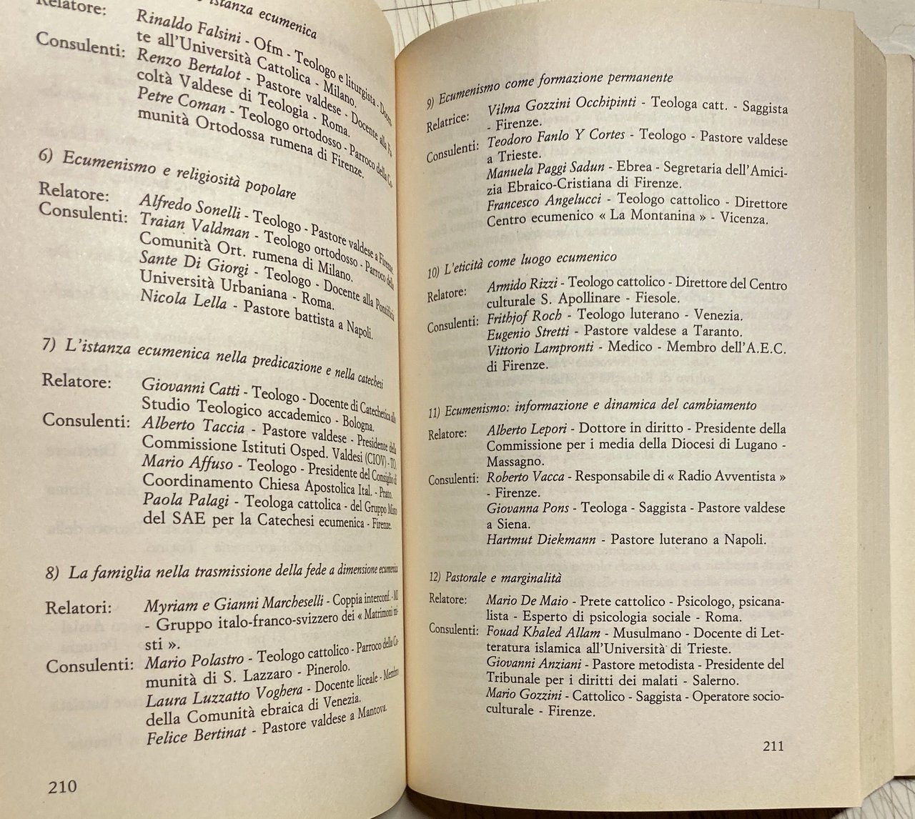 - Autori Vari, Giuseppe Alberigo, Giovanni Anziani, Piero Bensi, Renzo Bertalot, Elio Bromuri, Giovanni Catti, Angelo Chiaroni, Martin Cunz, Luigi Della Torre, Mario De Maio, Wilhelm Egger, Rinaldo Falsini, Daniele Garrone, Moshe Saadoun, Luigi Sartori, Pietro Giachetti, Mario e Vilma Gozzini, Franco Scopacasa, Juerg Kleemann, Florestana Sfredda, Filodemo Iannuzzelli, Alfredo Sonelli, Alberto Lepori, Gheorghiu Spiridione, Amos Luzzatto, Piero Stefani, Gianni e M. Marcheselli, Traian Valdman, Carlo Molari, Giovanna Pons, Tecle Vetrali, Maria Vingiani, Paolo Ricca, Glen Garfield Williams, Armido Rizzi, Giancarlo Zizola