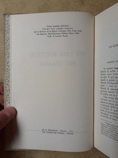 Prima edizione. Titolo in costa di copertina rilegata: Principes d'une politique humaniste. Rilegato in tela. Mantiene copertina originale.