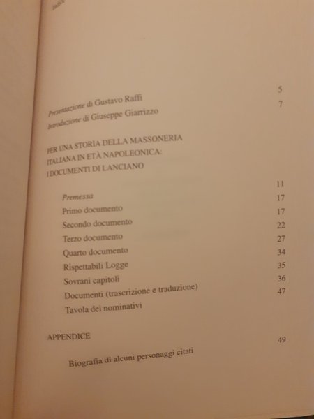 PER UNA STORIA DELLA MASSONERIA ITALIANA IN ETA' NAPOLEONICA: I DOCUMENTI DI LANCIANO INTRODUZIONE DI G.PPE GIARRIZZO