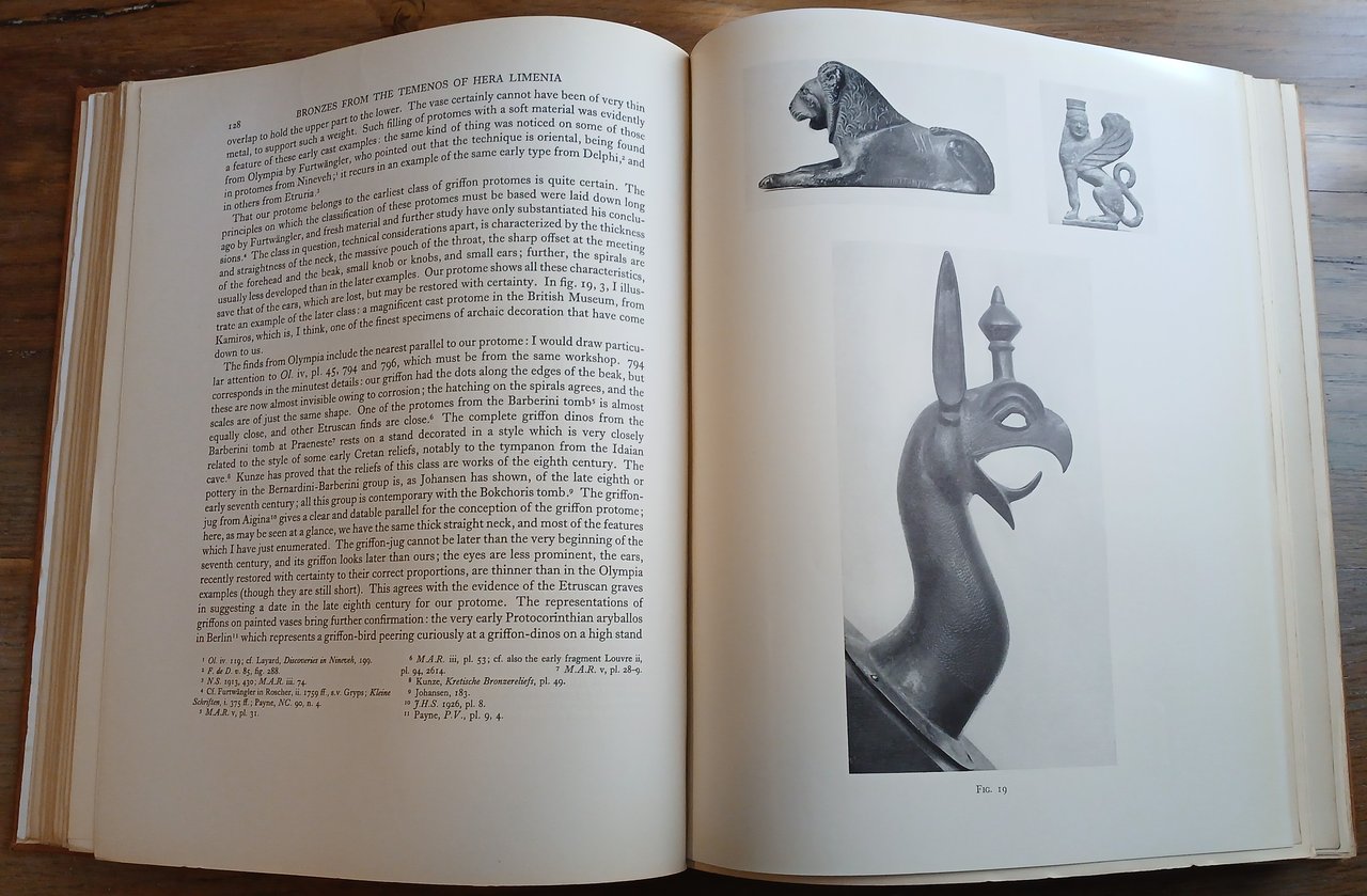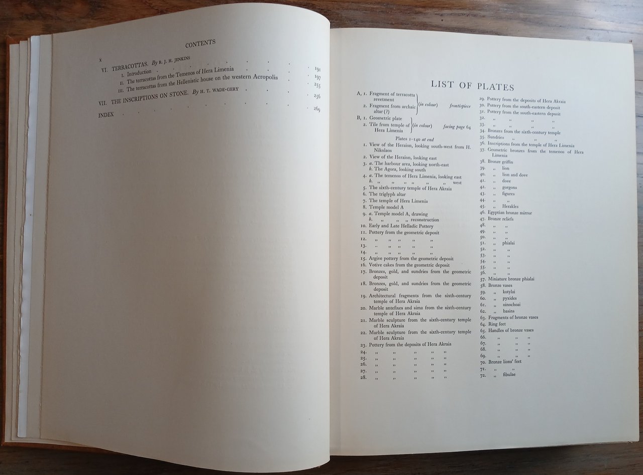 In 4°, legatura editoriale in piena tela con titoli in oro al dorso, sovraccoperta a stampa, pp. XII,(2),271,(1), con 26 illustrazioni nel testo, 142 tavole fuori testo, alcune ripiegate, di cui 2 a colori. Nota di proprietà al recto del foglio di guardia anteriore. Alcune mende alla sovraccoperta, peraltro ottimo stato di conservazione. Edizione a cura di Thomas James Dunbabin che firma anche la prefazione. Il secondo volume di questa pubblicazione sarà edito nel 1962.