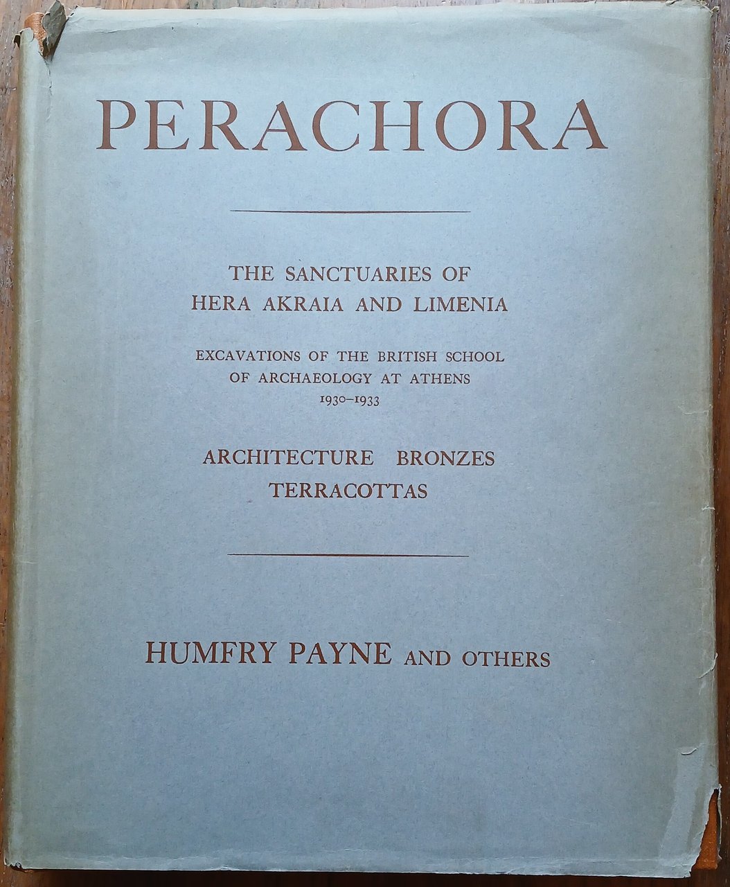 Perachora. The sanctuaries of Hera Akraia and Limenia. Excavations of the British School of Archaeology at Athens 1930-1933. Architecture, Bronzes, Terracottas. (Volume 1).