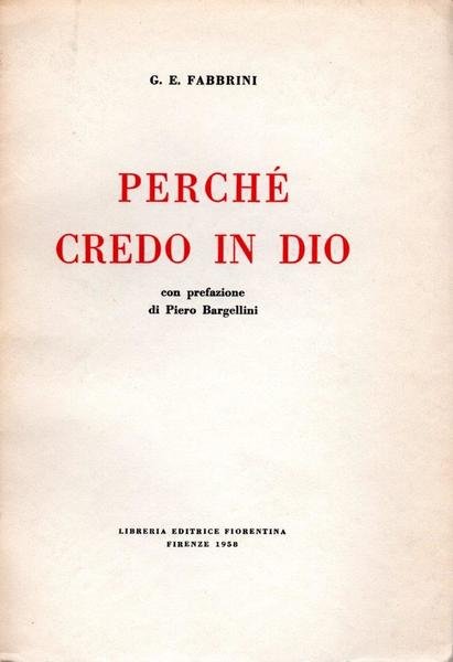 Perché credo in Dio, prima edizione giugno 1958, pp. 71, formato 14 x 20.<BR>Copertina morbida di colore bianco con titoli in nero e rosso. Prefazione di Piero Bargellini.<BR>Lievi bruniture in copertina al piatto anteriore e sulla costola. Nel complesso ottime condizioni.