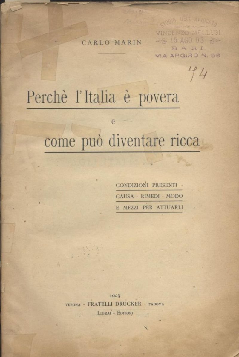 PERCHE' L'ITALIA E' POVERA E COME PUO' DIVENTARE RICCA di Carlo Marin 1903 libro