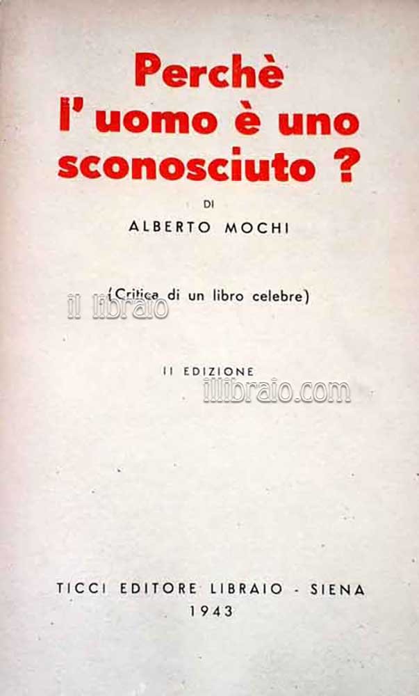 in 8°; pp. 184; br. con fascetta edit. Questa critica al libro ormai celebre del dr. Carrel è opera di un eminente medico e pensatore e costituisce uno studio profondo sui rapporti fra la civiltà e la scienza positiva (intonso - ottimo)