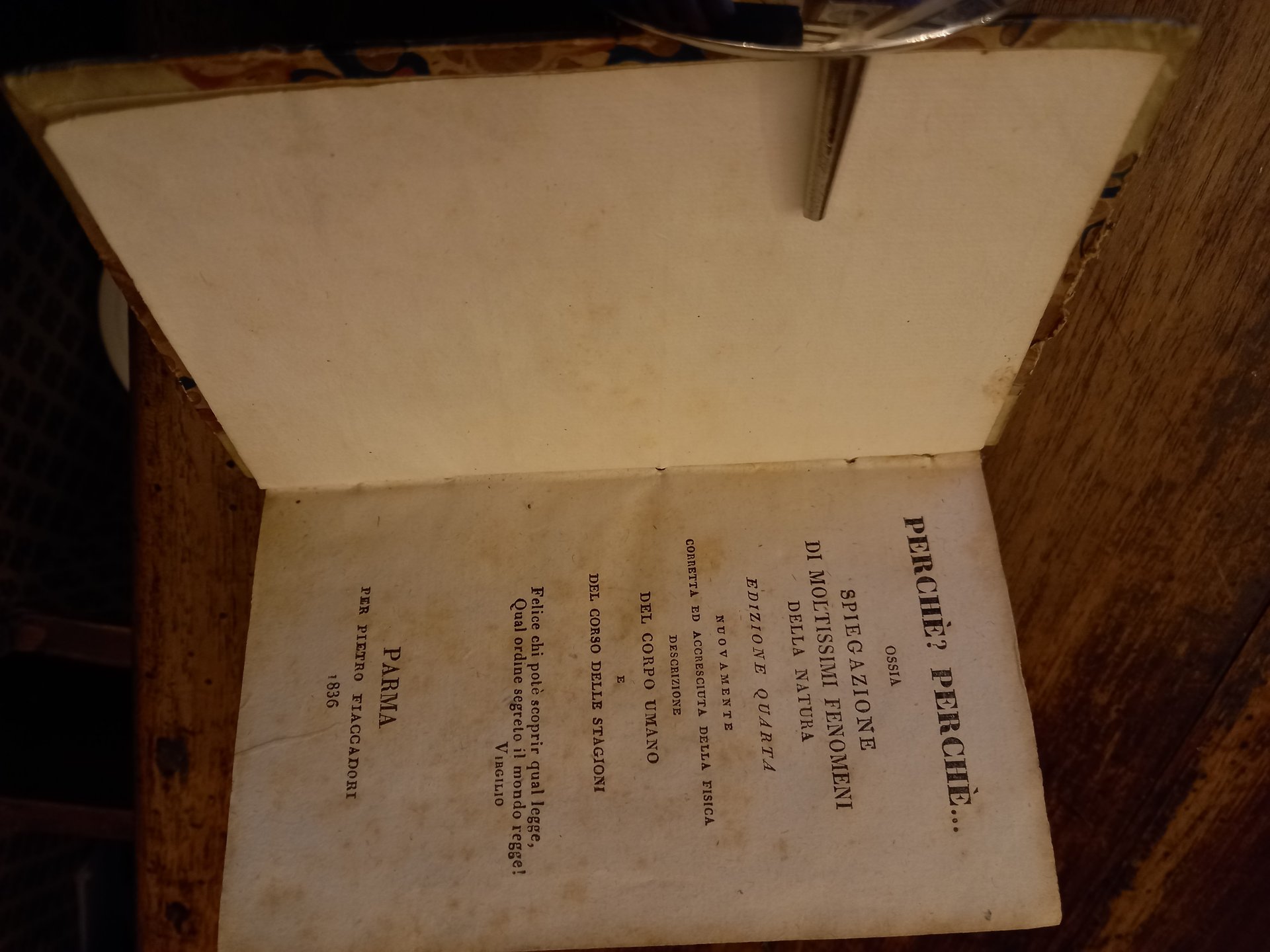 Perchè? Perchè? . ossia Spiegazione di moltissimi fenomeni della natura. Edizione quarta. Nuovamente corretta ed accresciuta della fisica descrizione del corpo umano e del corso delle stagioni