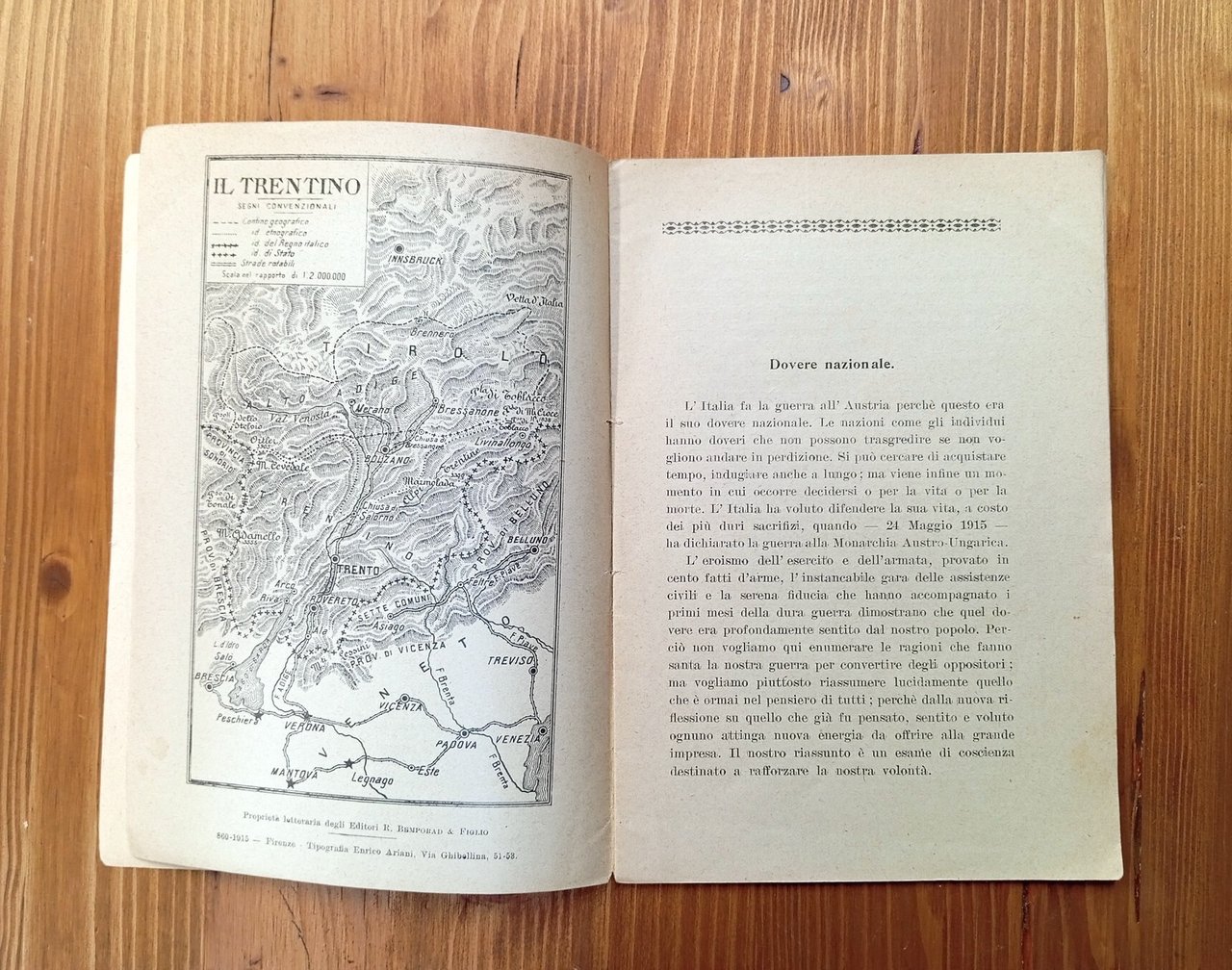 "Bibliotechina illustrata Bemporad per la gioventù, per i soldati, per il popolo" - Brossura originale di 40 pagine con 2 carte geografiche. Qualche danno al dorso ma complessivamente in buono stato; edizione non comune.