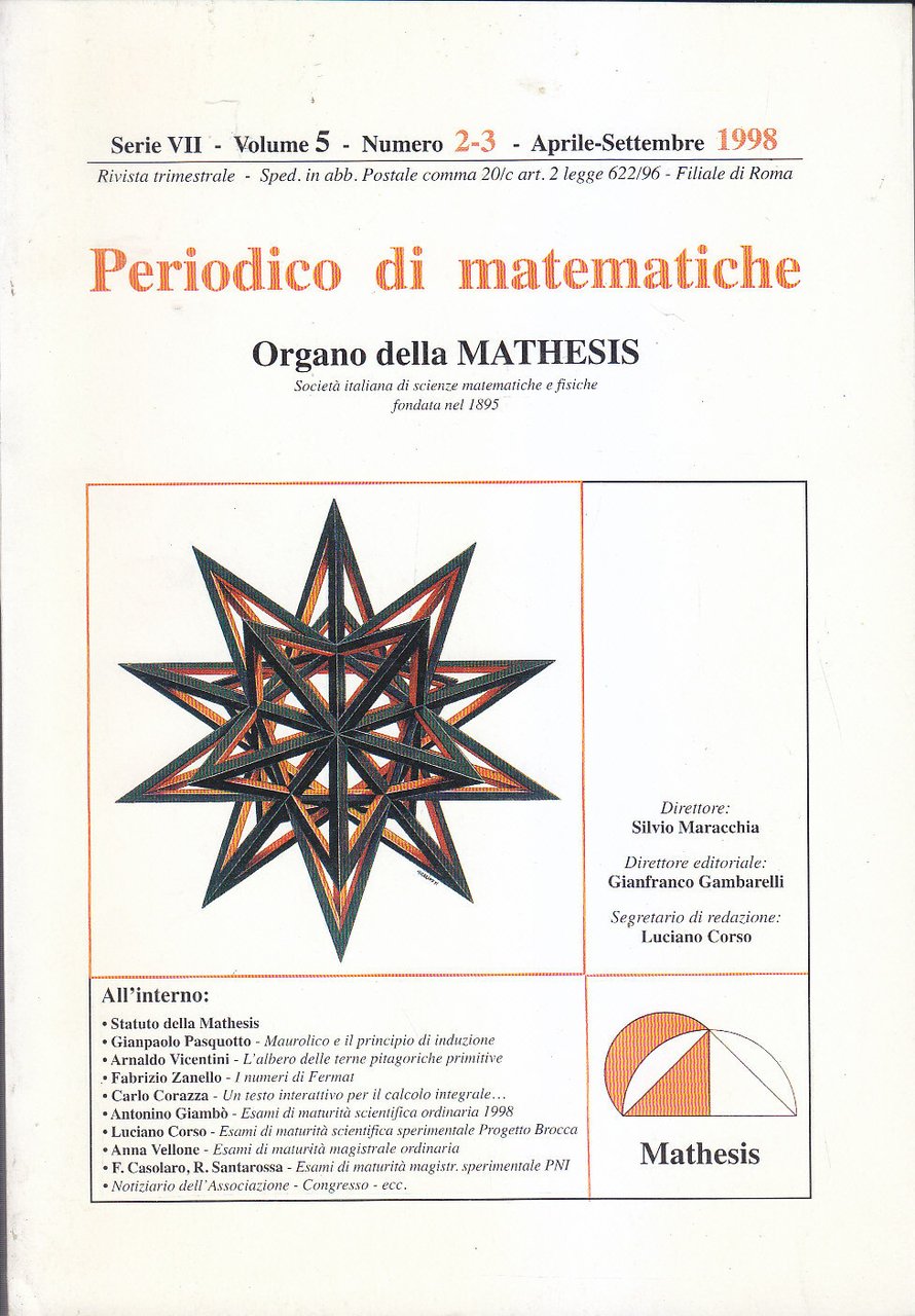 PERIODICO DI MATEMATICHE 1998 annata completa 3 volumi organo mathesis rivista