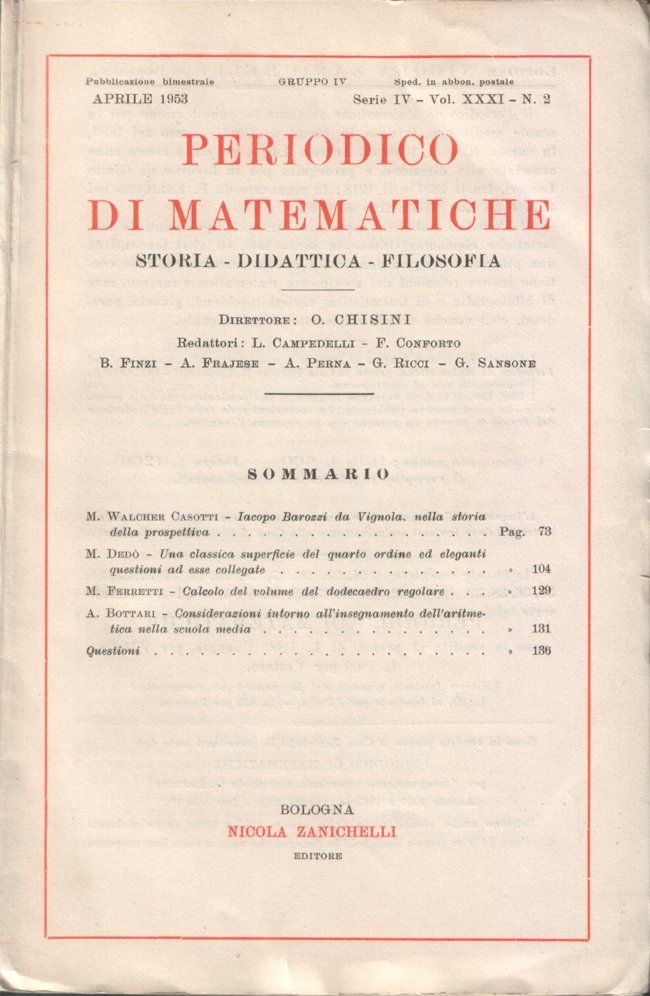 Periodico di matematiche. Storia - Didattica - Filosofia. Pubblicazione bimestrale. Aprile 1953 - Serie IV - Vol. XXXI - N. 2