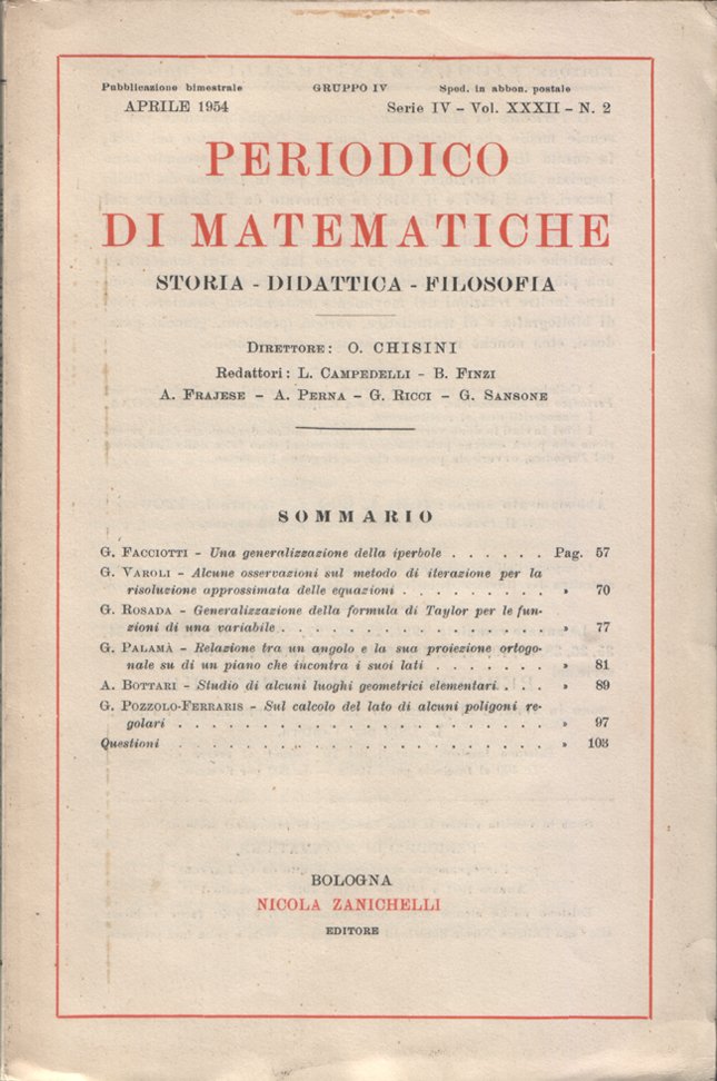 Periodico di matematiche. Storia - Didattica - Filosofia. Pubblicazione bimestrale. Aprile 1954 - Serie IV - Vol. XXXII - N. 2