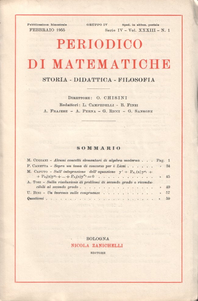 Periodico di matematiche. Storia - Didattica - Filosofia. Pubblicazione bimestrale. Febbraio 1955 - Serie IV - Vol. XXXIII - N. 1