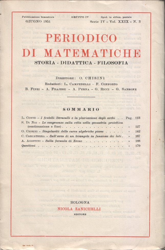 Periodico di matematiche. Storia - Didattica - Filosofia. Pubblicazione bimestrale. Giugno 1951 - Serie IV - Vol. XXIX - N. 3