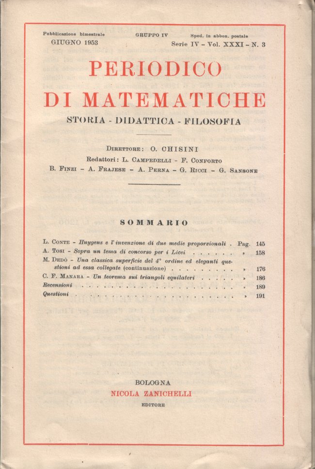Periodico di matematiche. Storia - Didattica - Filosofia. Pubblicazione bimestrale. Giugno 1953 - Serie IV - Vol. XXX) - N. 3
