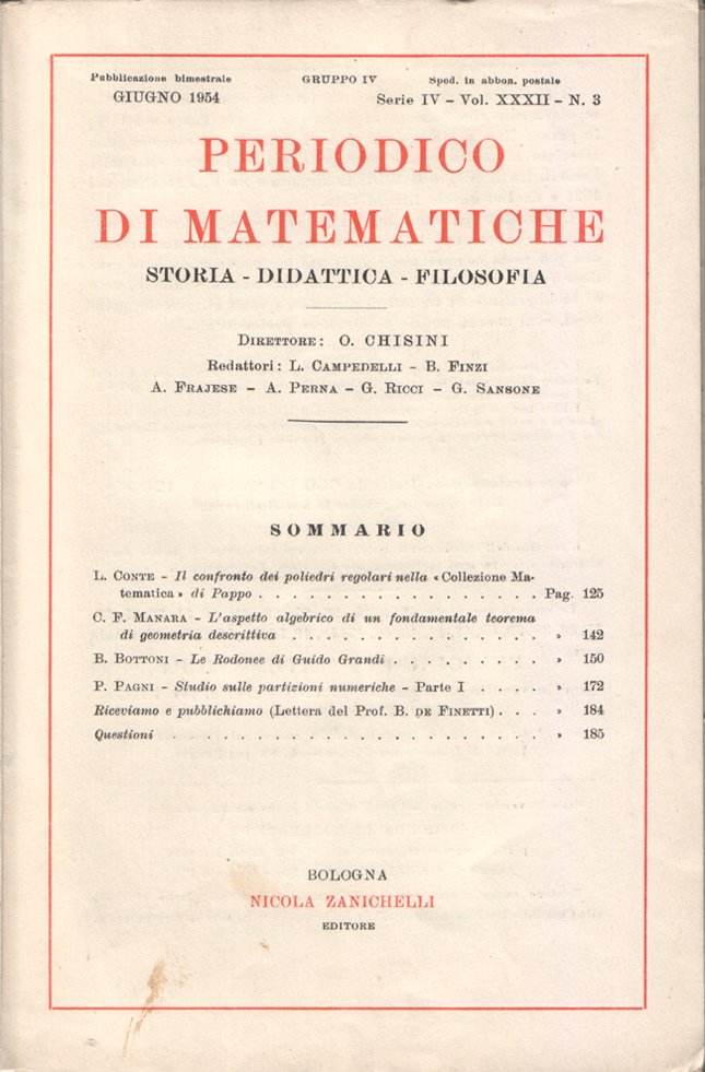 Periodico di matematiche. Storia - Didattica - Filosofia. Pubblicazione bimestrale. Giugno 1954 - Serie IV - Vol. XXXII - N. 3
