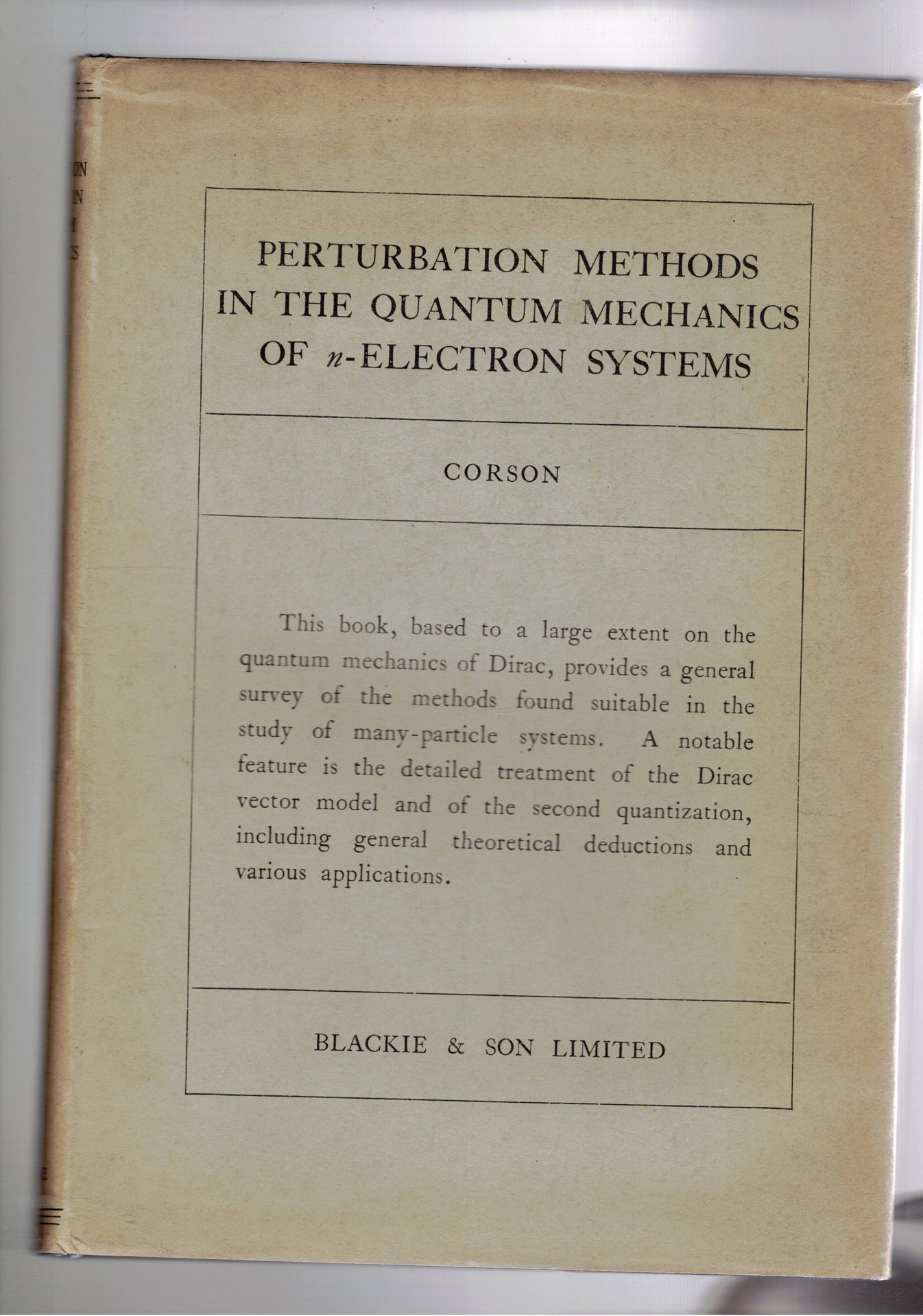 Perturbation Methods in the Quantum Mechanics of n - Electron Systems. Prima edizione.