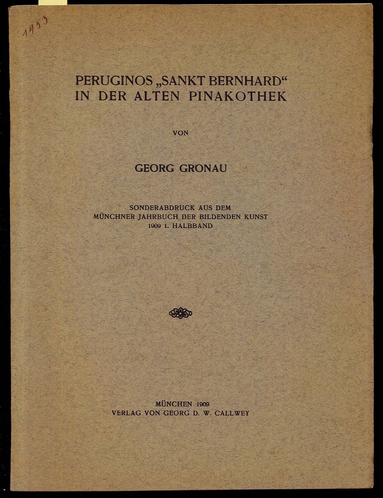 Opuscolo vintage in-4° con 7 pagg, Monaco di Baviera, 1909. Arte. Illustrazione in bn fuori dal testo con carta velina. Note a matita all'interno del testo. Testo in lingua tedesca.