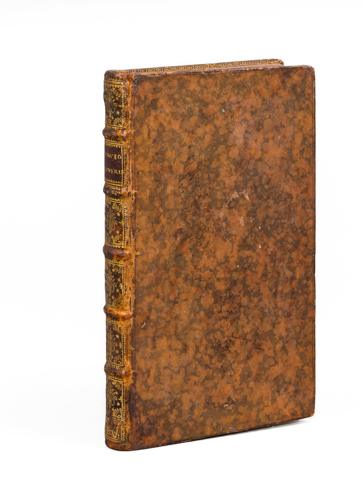 1 vol. in-8 reliure de l'époque pleine basne marbrée, dos à 5 nerfs orné, coupes et chasses ornées, Apud Henricum Scheurleer, Hagae Comitum [ Den Haag ; La Haye ], 1712, XVI-208 pp. et 8 ff. n. ch. Rappel du titre complet : Pervigilium Veneris ex editione Petri Pithoei, Cum ejus & Justi Lipsii Notis ; Itemque ex alio Codice Antiquo, Cum Notis Cl. Salmasii et Pet. Scriverii Accessit ad haec Andr. Rivini Commentarius. Ausonii Cupido Cruci Adfixus, Cum Notis Mariang. Accursii, El Vineti, Pet. Scriverii et Anonymi. Accessere ad Calcem Jos. Scaliger et Casp Barthii animadversione Le manuscrit de la "Veillée de Vénus" ("Pervigilium Veneris") fut découvert en 1507 à Venise, par Erasme, dans la bibliothèque d'Alde Manuce, mais il ne fut publié par Pierre Pithou qu'en 1587. Le poème décrit le réveil printanier de la flore et de la faune. Bon état (ex-libris en garde). Good condition (ex-libris).