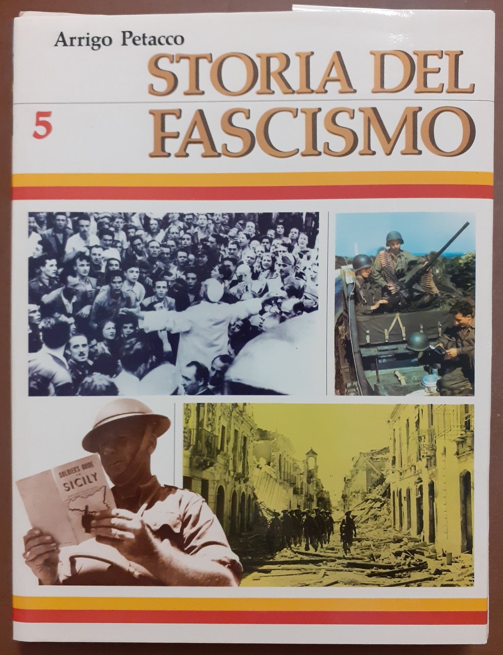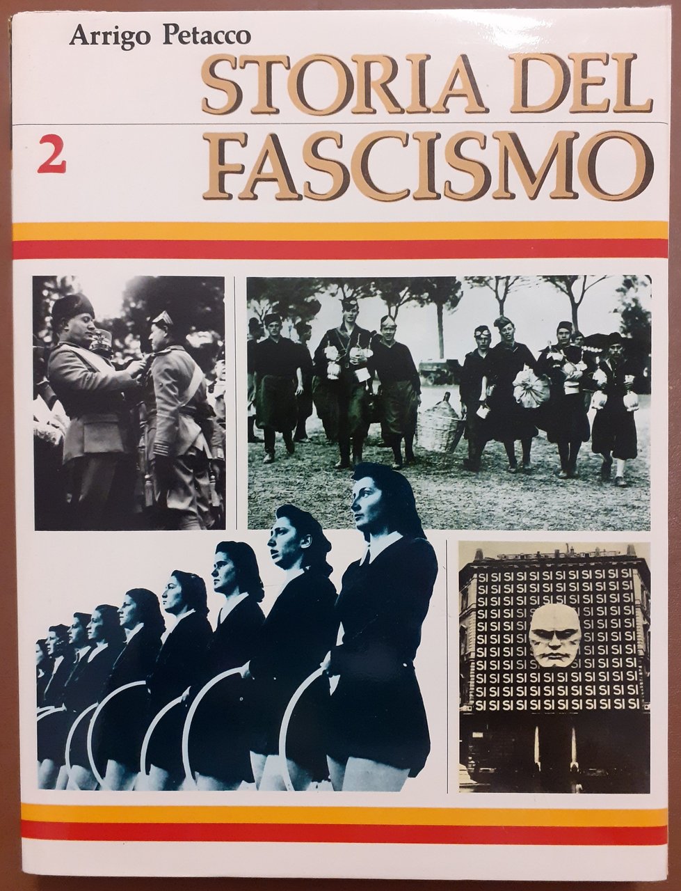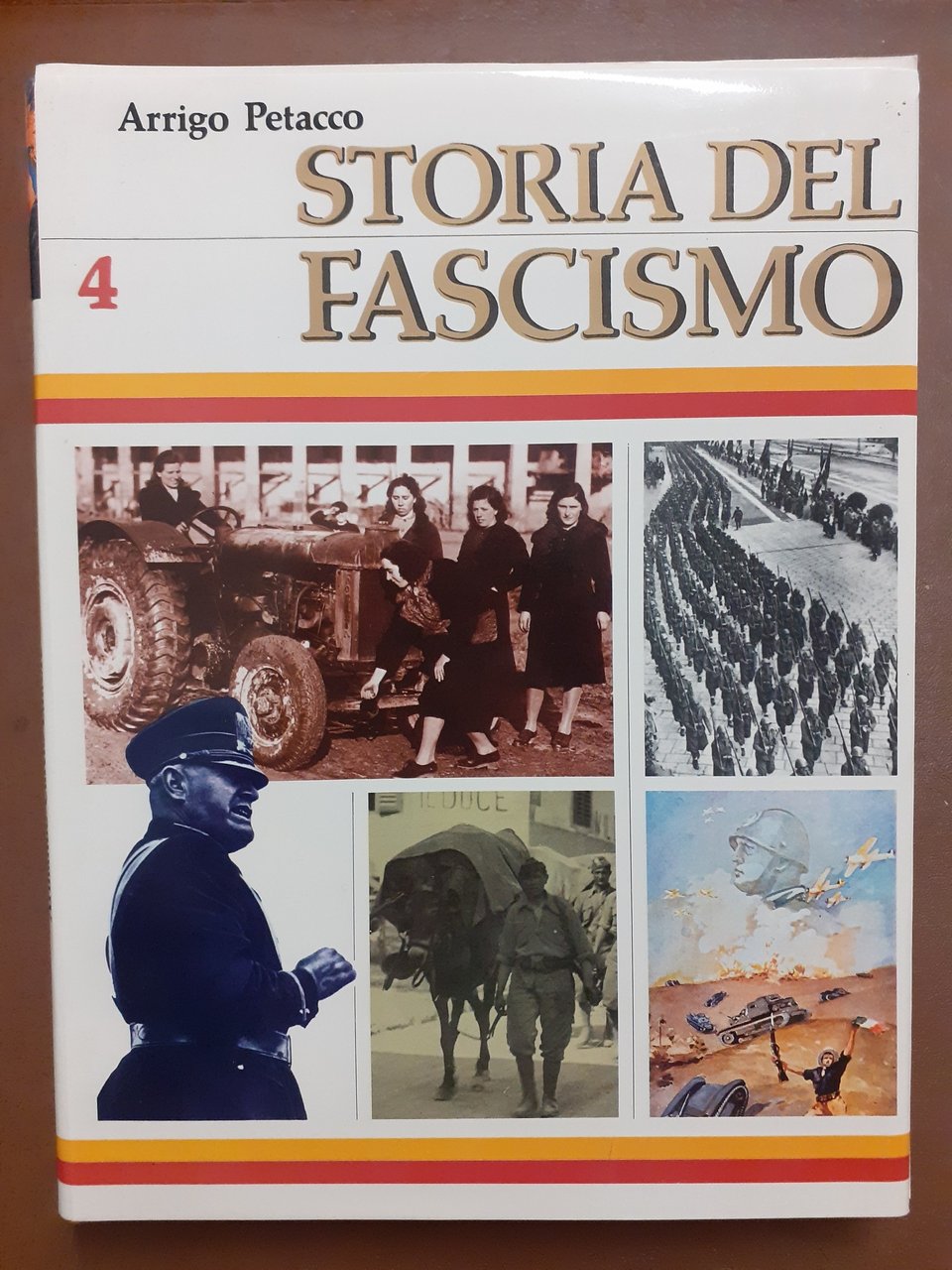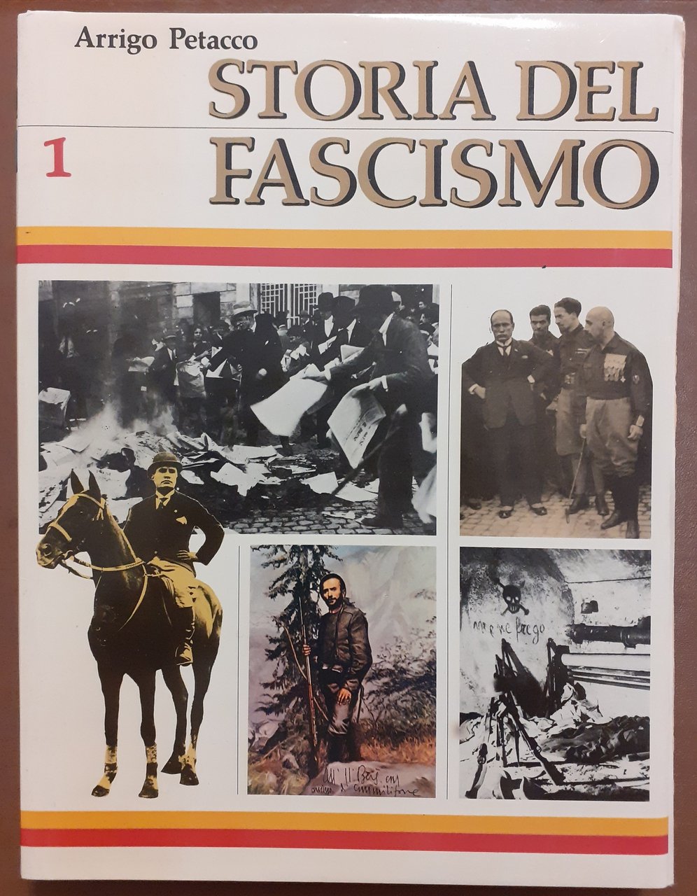 Arrigo Petacco, Storia del fascismo, presentazione di Denis Mack Smith, Armando Curcio Editore, Roma 1982, 6 voll., pp. totali 2274, ill. b.n. e col., cm 29, fascicoli sciolti completi di copertine in tutta tela ed. con titoli al dorso, decorazioni a impressione al piatto e sovraccoperte. Mancante il fascicolo n. 69 del sesto volume (pp. 2178-2208), per il resto opera completa. Settantuno fascicoli sciolti completi di copertine ed. originali in tutta tela, carte di guardia e frontespizi, per un totale di sei volumi. Le introduzioni ad ogni parte sono di Denis Mack Smith. Ottimo.