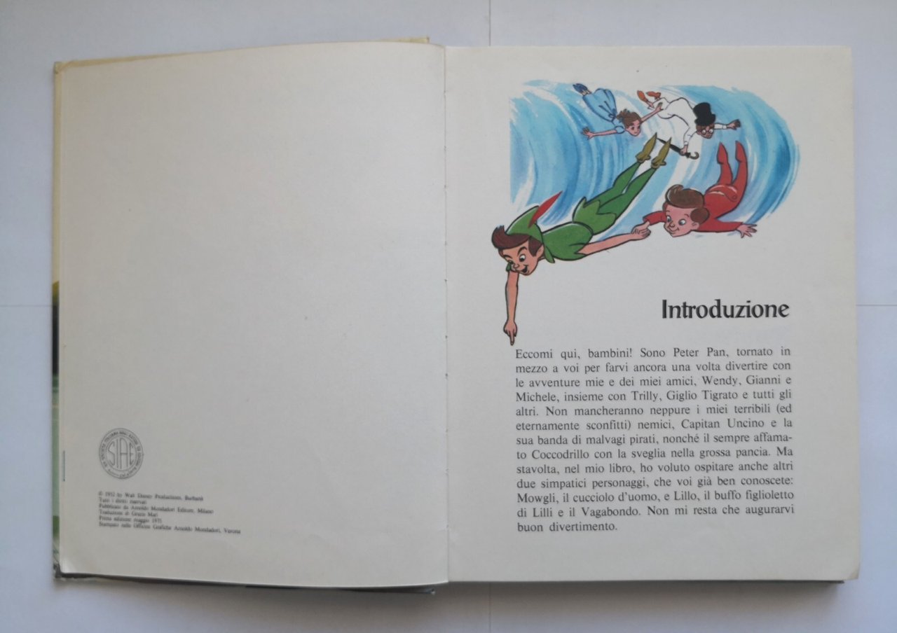 PETER PAN E GLI AMICI DELL'ISOLA CHE NON C'È di Walt Disney 1975 Mondadori Libro