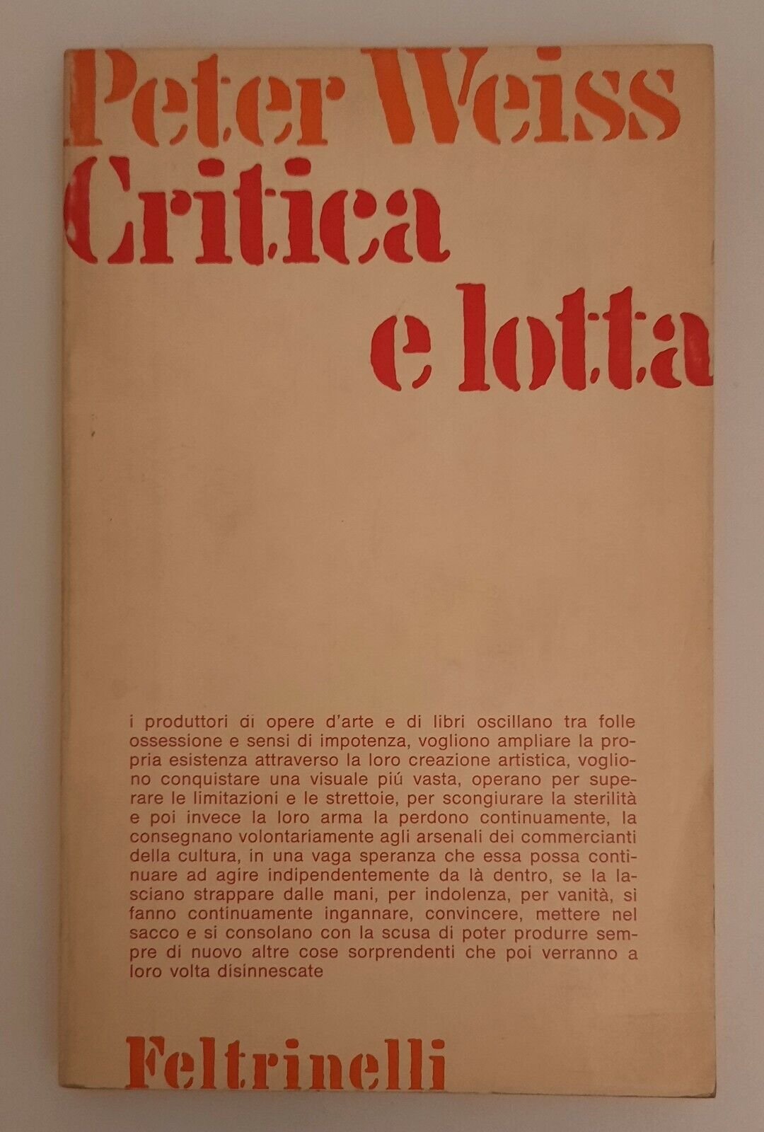 PETER WEISS CRITICA E LOTTA FELTRINELLI 1976 MATERIALI