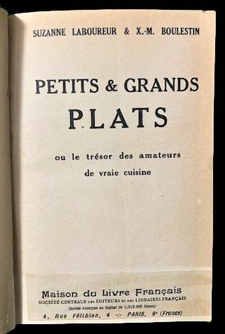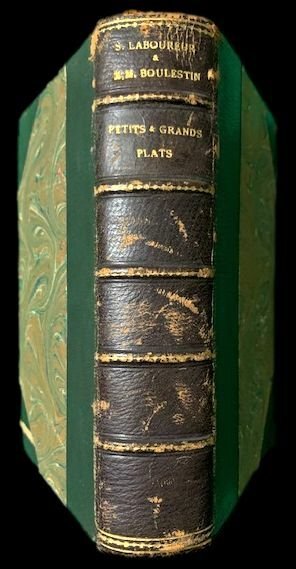 In 8°; 381, (3) pp. Manca la prima carta bianca. Legatura coeva in mezza-pelle scura con titolo, autori e filetti in oro ai nervi ed al tassello. Piatti foderati di carta marmorizzata. Qualche strofinatura al dorso e nel complesso esemplare in buone-ottime condizioni di conservazione. Prima edizione di questo noto trattato gastronomico. Decorazioni di Suzanne Laboureur. L'opera è utilmente divisa in capitoli, come Les Potages, Les Sauces, Les Oeufs, Les Poissons, Les crustaces -Les Coquillages, Le Petites Entrees Les Curries -Les pates et le riz, Les viandes Les Viandes Le Mouton, Le Volaille, La giber a plumes, Le giber a poils, Les legumes, Les salades, Le dessert, Les mois gastronomiques, ecc. Un'ampia parte è dedicata alla pasticceria. L'opera contiene un sacco di ricette pratiche esposte in un linguaggio semplice e diretto.