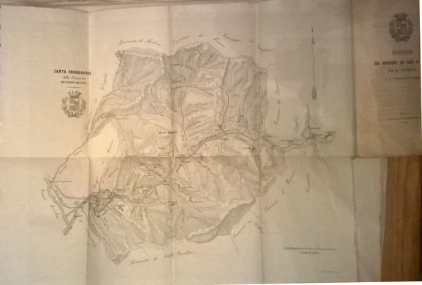 In 8, p. 50, con 7 tabelle ripiegate f.t. ed una grande carta corografica ripiegata, br. orig.