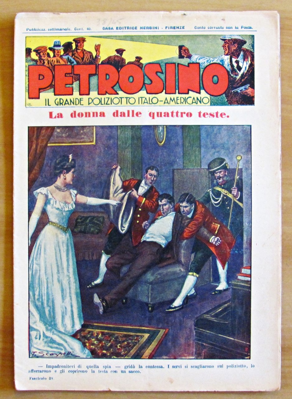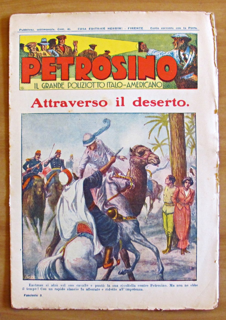 Raccolta in Fascicoli sciolti N.3/60. Belle copertine a colori di Tancredi Scarpelli. Ed. Nerbini - Firenze, Nov.1934 / Dic. 1935. Fascicoli editoriali con qualche dorsetto da consolidare. Al fascicolo N.23 manca un piccolo frammento al margine alto della copertina. Ai N.27, 29, 32 e 33 mancano le retrocopertine. Inoltre, il N.28 ha delle barbe e una mancanza al margine basso della retrocopertina; il N.29 ha delle macchioline passanti in qualche pagina. 21x29; pp.16 ciascuno. Rari e in Buonissimo stato. , Molto buono (Very Good)