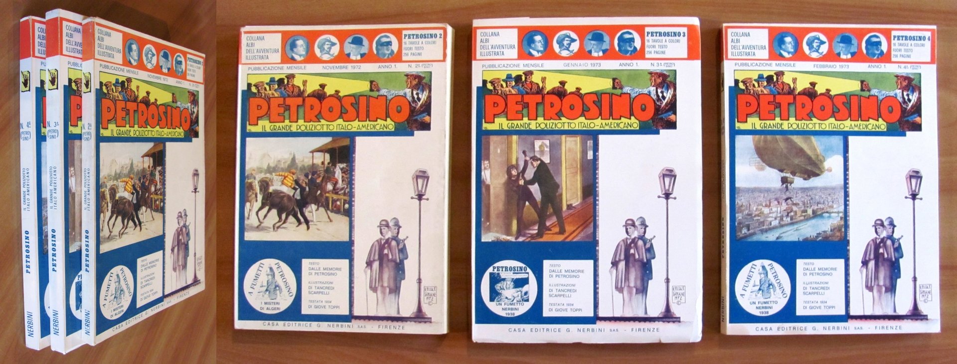 Collana Albi dell'Avventura Illustrata. Testatine di Giove Toppi e copertine a colori di Scarpelli. Casa Editrice Nerbini - Firenze, 1972/73. Ristampe integrali della I edizione Nerbini anteguerra. Ogni volume contiene 16 fascicoli con relative copertine a colori. Brossure editoriali. 20x28,5; pp.256 ciascuno. Tutti in Ottimo stato