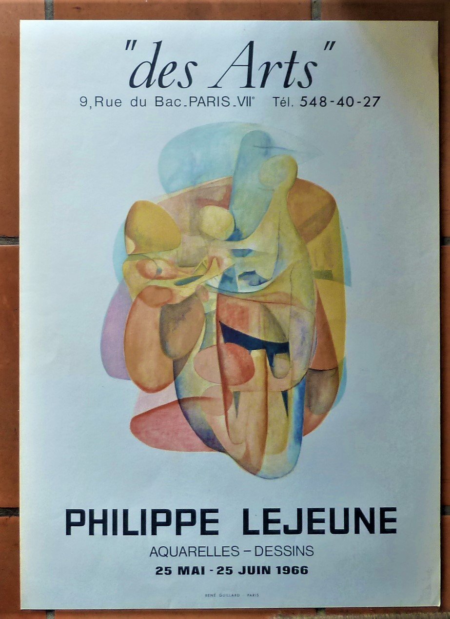 Philippe Lejeune, Aquarelles, Dessins. Affiche éditée pour l'exposition à la galerie "Des Arts", rue du Bac à Paris du 25 Mai au 25 juin 1966.