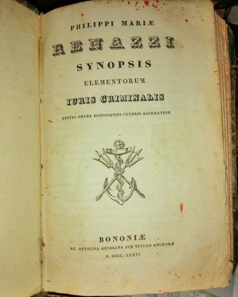 Philippi Mariae Renazzi synopsis elementorum iuris criminalis editio prima bononiensis ceteris accuratior.