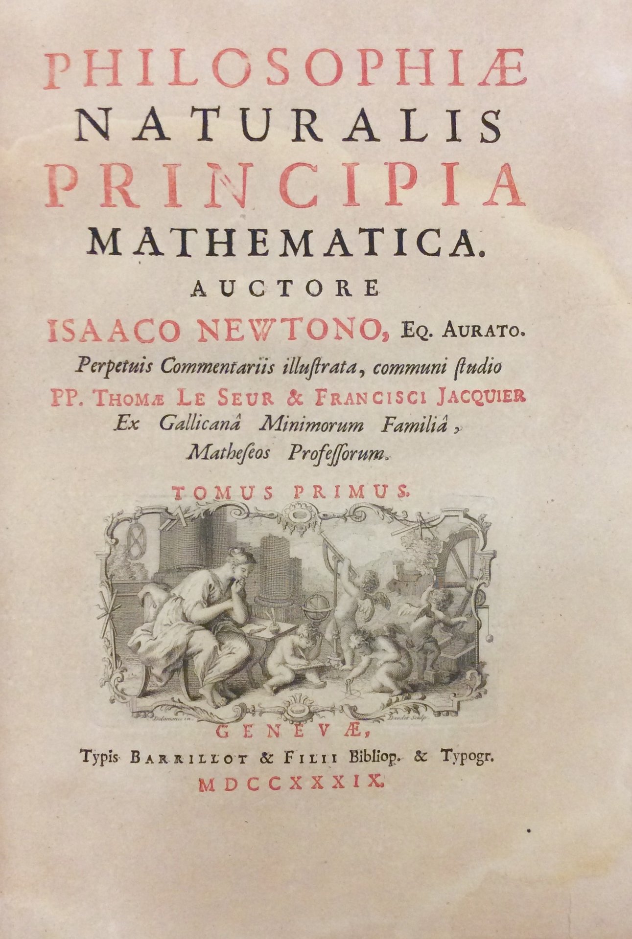 PHILOSOPHIAE NATURALIS PRINCIPIA MATHEMATICA. - Perpetuis Commentariis illustrata, communi studio PP. Thomae Le Seur & Francisci Jacquier.