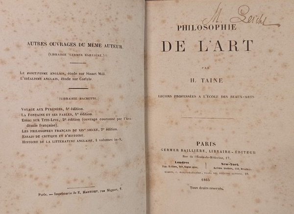 Copertina: rigida<BR>Condizioni buone. Dorso e bordo con leggeri segni di usura. Alcuni punti luminosi in diverse pagine<BR>Lingua francese<BR>Informazioni Prima edizione. 175 pagine. In mezzo marocchino rosso con bordo dorato su tavole marmorizzate, bordo superiore dorato. <BR>