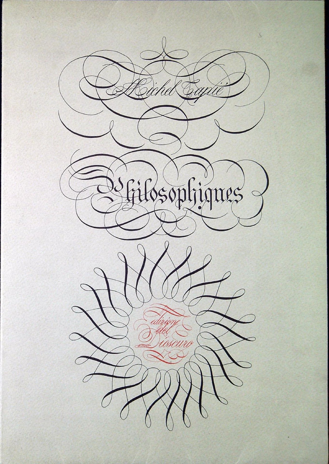Michel Tapié ; calligrafie e svolazzi a mano alzata di Gio Minola Philosophiques. Torino, Edizioni del Dioscuro 1962, 31 44 p. Bel volume di arte calligrafica in ottime condizioni (44766)