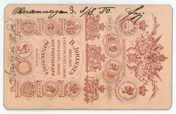 105:67 mm. Die Bildseite zeigt den Passionsdarsteller im Rollenkostüm kniend bei dem Oberammergauer Passionsspiel, auf der Versoseite signiert. - "Für Ludwig II. leisteten sich die Oberammergauer, nach Münchner Beispiel, eine Sondervorstellung. Dafür empfing der Märchenkönig die Spieler in seinem nahebei im Graswangtal erstandenen Schloss Linderhof. Er schenkte jedem einen Silberlöffel (nur Judas bekam einen aus Blech), befreite den Christusdarsteller Joseph Mayer vom Kriegsdienst in Frankreich und spendete der Gemeinde die Kreuzigungsgruppe des Bildhauers Halbig, von der sich beim Transport am Ettaler Berg die 40 Zentner schwere Johannesfigur löste und zwei Steinmetze tötete. Immer wieder hatten die Oberammergauer ihr gewisses Kreuz mit der Passion, auch wenn sie alle zehn Jahre jubeln und Kasse machen konnten" (Karl Stankiewitz: Mir ging eine neue Welt auf. Die Anfänge des Fremdenverkehrs in Oberbayern. Erfurt: Sutton, 2011, S. 101).