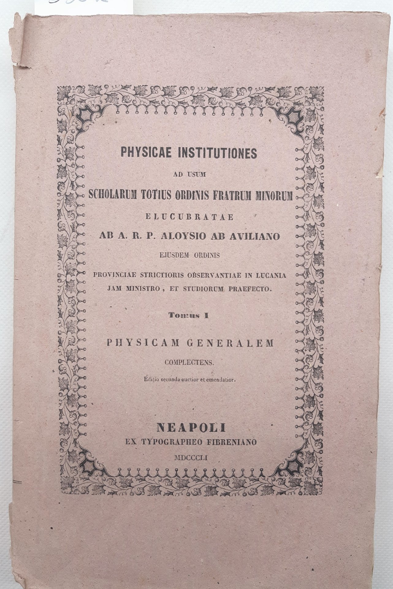 Physicae Institutiones ad usum scholarum totius ordinis fratrum minorum Neapoli 1851 tomo I Physicam Generalem