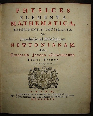 Physices elementa mathematica, experimentis confirmata. Sive introductio ad philosohpiam Newtonianam. Tomus primus (e Tomus secundus)