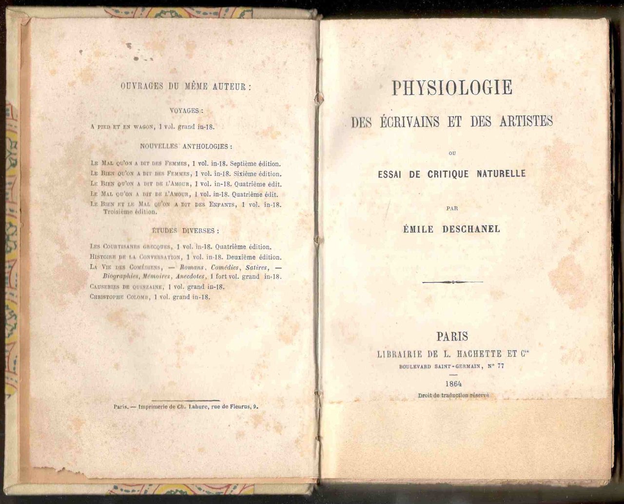 Physiologie des écrivains et des artistes, ou Essai de critique naturelle